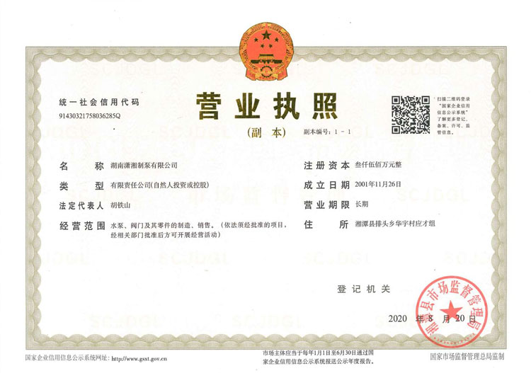 20年致力于離心泵的研發與制造,年產量超過8000臺套; 占地面積50000平方米,擁有10個部門,5個車間; 公司為湖南省高新技術企業,“湘泵”商標為湖南省著名商標。